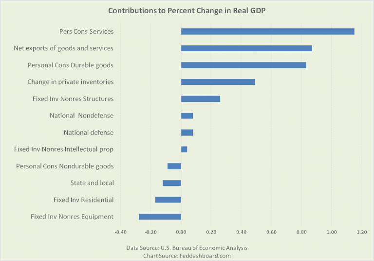 Thanks to the number crunchers at the BEA, we can see the contributions to percent change in Gross Domestic Product (GDP) – these add up to 3.2%.