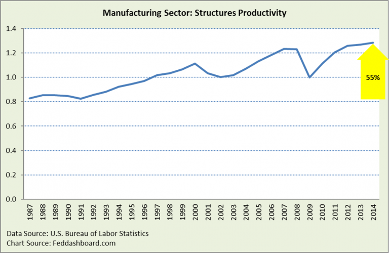 Structure productivity has grown 55% since the mid-1980s when robots were still new and more innovations were in the distant future: